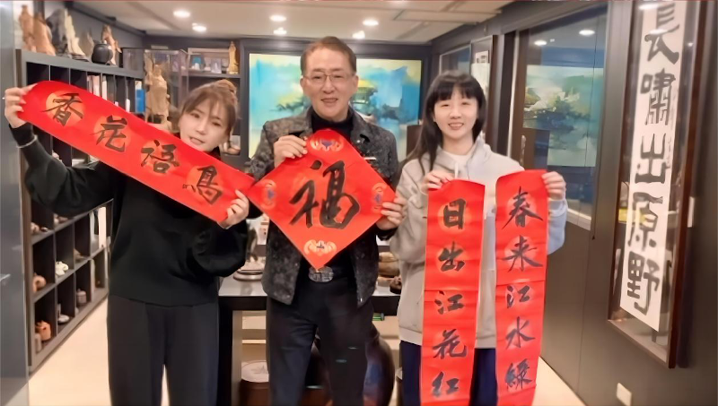 臺(tái)灣山東鄉(xiāng)親在視頻中展示收到的福字和春聯(lián)