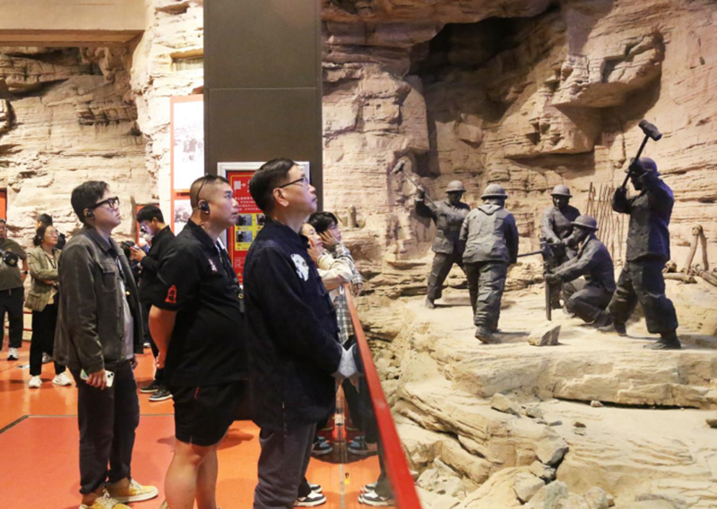洹水潺潺,太行巍巍。作為中國八大古都之一,這里承載著殷商的盛世榮光,也孕育著紅旗渠的奮斗傳奇!凹t旗渠就是紀(jì)念碑,記載了林縣人不認(rèn)命、不服輸、敢于戰(zhàn)天斗地的英雄氣概!睅е鴮t旗渠精神的敬仰,參訪團一行來到紅旗渠紀(jì)念館。“沒想到在那么艱苦的條件下,竟能完成這樣宏偉的工程!迸_胞陳女士凝視著展板上“削平1250座山頭、鑿?fù)?11個隧洞”的字樣,不禁感嘆,“紅旗渠精神代表著艱苦創(chuàng)業(yè)、無私奉獻(xiàn),這些品質(zhì)在今天依舊很重要!
