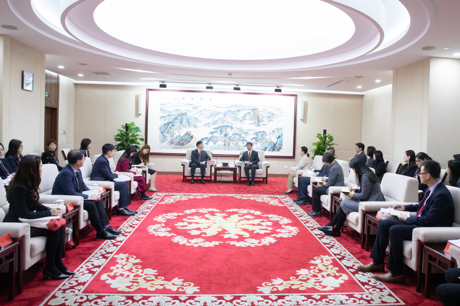 中共中央臺辦、國務院臺辦副主任仇開明11月14日在北京會見香港特區(qū)政府政制及內地事務局副局長胡健民一行。