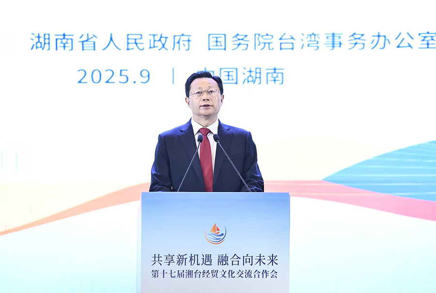 9 月16日,中共中央臺(tái)辦、國(guó)務(wù)院臺(tái)辦副主任潘賢掌在湖南省長(zhǎng)沙市出席第十七屆湘臺(tái)經(jīng)貿(mào)文化交流合作會(huì)開幕式并致辭。