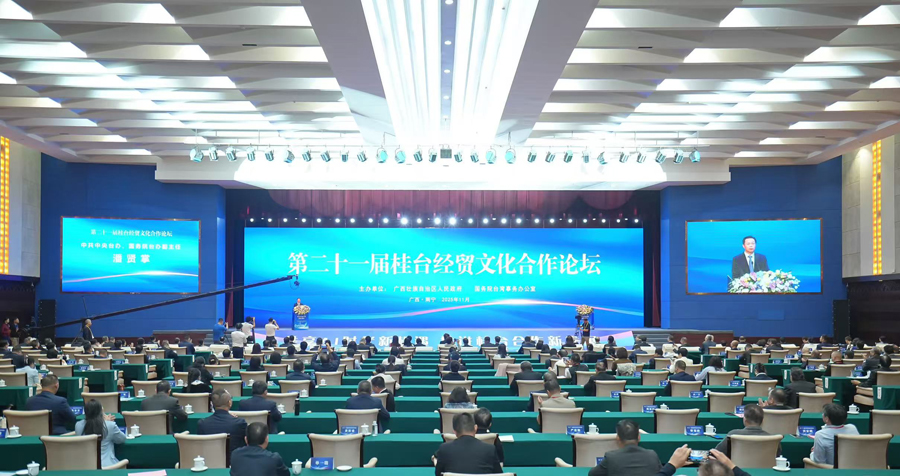 11月11日,中共中央臺(tái)辦、國(guó)務(wù)院臺(tái)辦副主任潘賢掌在廣西南寧出席第二十一屆桂臺(tái)經(jīng)貿(mào)文化合作論壇開(kāi)幕式并致辭。