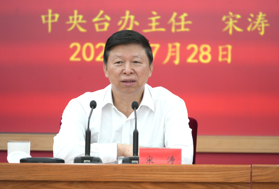 宋濤表示,中央臺辦全體黨員干部要從堅(jiān)定擁護(hù)“兩個確立”、堅(jiān)決做到“兩個維護(hù)”的政治高度,持續(xù)推動學(xué)習(xí)貫徹習(xí)近平新時代中國特色社會主義思想走深走實(shí)。對臺工作是黨和國家事業(yè)的重要組成部分,要始終堅(jiān)持黨中央對對臺工作的集中統(tǒng)一領(lǐng)導(dǎo)。要強(qiáng)化政治機(jī)關(guān)意識,不斷提高政治判斷力、政治領(lǐng)悟力、政治執(zhí)行力,善于從政治上想問題、辦事情、干工作,始終同黨中央要求對表對標(biāo)。要深入學(xué)習(xí)宣傳貫徹習(xí)近平新時代中國特色社會主義思想特別是新時代黨解決臺灣問題的總體方略,在政治淬煉中打造對黨忠誠、業(yè)務(wù)專精、紀(jì)律嚴(yán)明的高素質(zhì)專業(yè)化對臺工作隊(duì)伍,為全面建設(shè)社會主義現(xiàn)代化國家、全面推進(jìn)中華民族偉大復(fù)興、完成祖國統(tǒng)一大業(yè)而團(tuán)結(jié)奮斗。