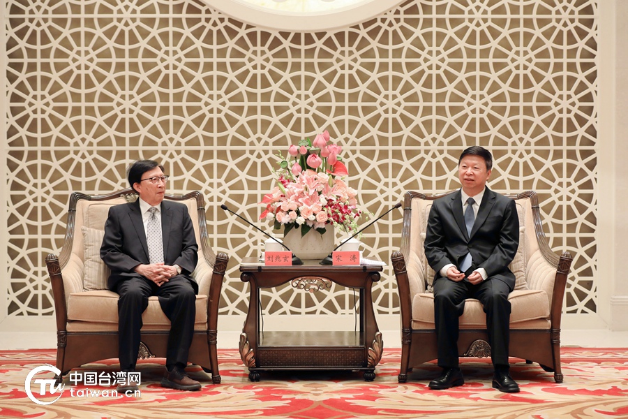 中共中央臺(tái)辦、國務(wù)院臺(tái)辦主任宋濤7月22日在昆山會(huì)見前來出席2024兩岸青年企業(yè)家菁英峰會(huì)暨兩岸青年實(shí)習(xí)就業(yè)創(chuàng)業(yè)研討會(huì)的峰會(huì)臺(tái)灣方面理事長劉兆玄。(中國臺(tái)灣網(wǎng)記者 尹賽楠 攝)