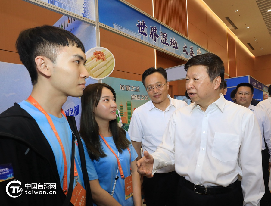 中共中央臺(tái)辦、國務(wù)院臺(tái)辦主任宋濤到臺(tái)灣青年學(xué)習(xí)就業(yè)創(chuàng)業(yè)專場(chǎng)推介會(huì)和兩岸青年團(tuán)體菁英會(huì)現(xiàn)場(chǎng),與臺(tái)灣青年交流。(中國臺(tái)灣網(wǎng)記者 尹賽楠 攝)
