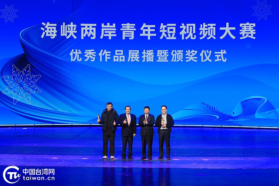 啟動儀式后,兩岸青年短視頻大賽優(yōu)秀作品展播暨頒獎活動登場。由兩岸青年創(chuàng)作并經(jīng)專業(yè)評審的40部獲獎作品,或展現(xiàn)大陸各地日新月異的發(fā)展面貌,或彰顯中華優(yōu)秀傳統(tǒng)文化魅力,或揭示兩岸歷史文化聯(lián)結(jié),或記錄兩岸青年交流交往的感人故事。宋濤、馬英九等為獲獎?wù)哳C獎。