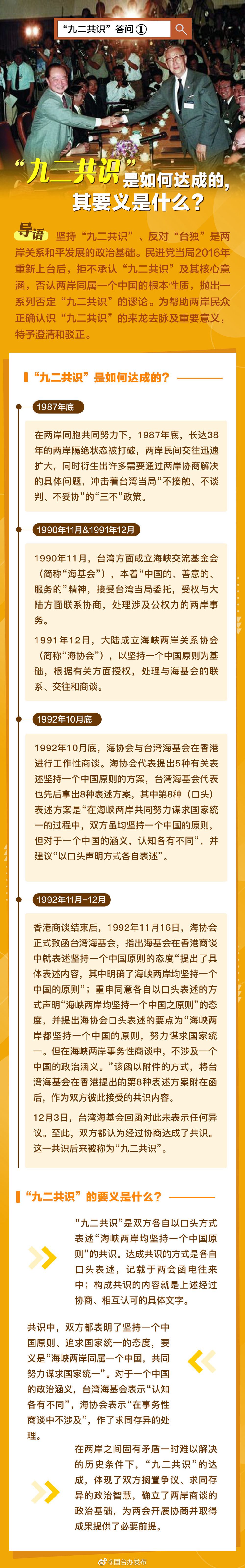 “九二共識”問答“九二共識”與“一國兩制”是一回事嗎?