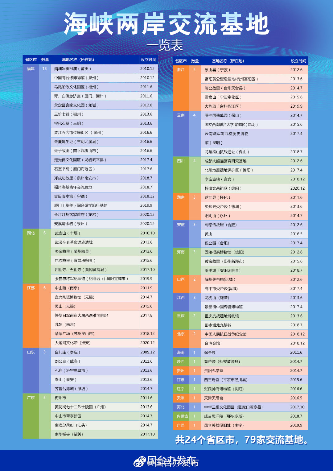 海峽兩岸交流基地一覽表和示意圖