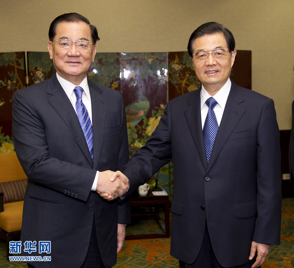 11月11日,中共中央總書記胡錦濤在美國夏威夷會(huì)見中國國民黨榮譽(yù)主席連戰(zhàn)。新華社記者 黃敬文 攝