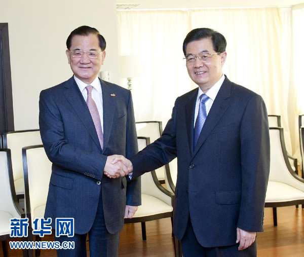 9月7日,中共中央總書記胡錦濤在俄羅斯符拉迪沃斯托克會(huì)見中國(guó)國(guó)民黨榮譽(yù)主席連戰(zhàn)。 新華社記者王曄攝