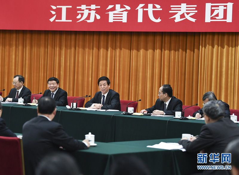 3月10日,中共中央政治局常委、全國(guó)人大常委會(huì)委員長(zhǎng)栗戰(zhàn)書(shū)參加十三屆全國(guó)人大二次會(huì)議江蘇代表團(tuán)的審議。 新華社記者 謝環(huán)馳 攝