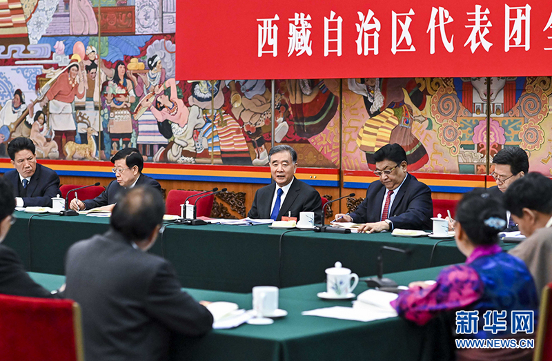 3月10日,中共中央政治局常委、全國(guó)政協(xié)主席汪洋參加十三屆全國(guó)人大二次會(huì)議西藏代表團(tuán)的審議。 新華社記者 李學(xué)仁 攝